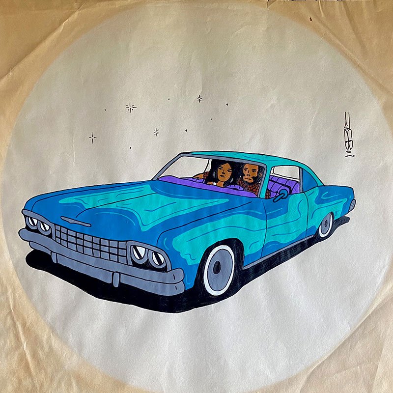 Originally from Tijuana, El Oms, born Omar Baltazar Juárez, is known for his illustrations, paintings, murals, and animation work. He has animated music videos for bands such as The Arcs, El Michels Affair, Lee Fields and Hermanos Gutiérrez. He has created a wide range of works, from album covers to drum pads, for both Easy Eye Sound and Big Crown Records. His artwork for The Arcs, Electrophonic Chronic, was nominated for the 2024 Grammy Award for Best Recording Package. His life-size paintings have been exhibited in Los Angeles galleries and commissioned for both interior and exterior buildings. Publications such as Rolling Stone, Chiron Review, World Star Hip Hop, Voyage LA, Nonesuch Journal and The Future Happened have featured his work. He has also illustrated the children's book Yeti Season, written by Francine Prose. His signature and most sought-after pieces are the pen-and-ink drawings on vintage 45 and LP record covers.